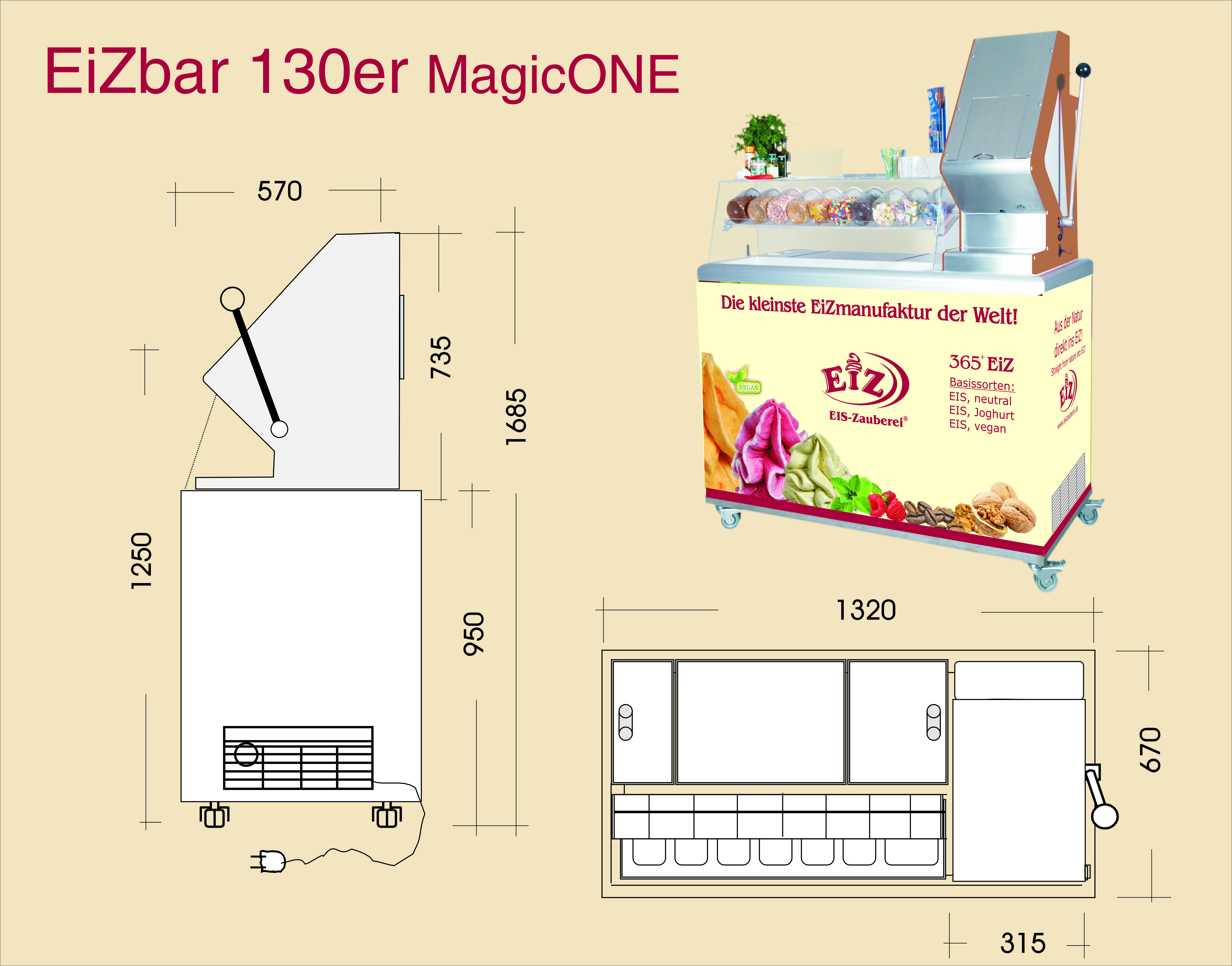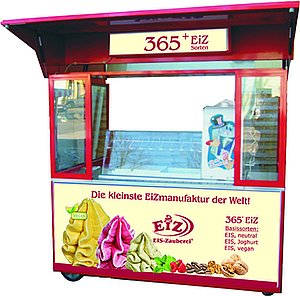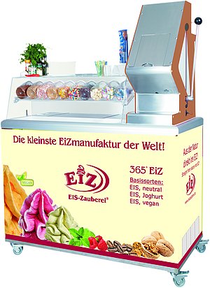 Mit dem Slogan "die wohl kleinste Eisfabrik der Welt®" bieten wir dir eine kleine kompakte Verkaufstheke mit sehr geringem Flächenbedarf und extrem leichter Handhabung.